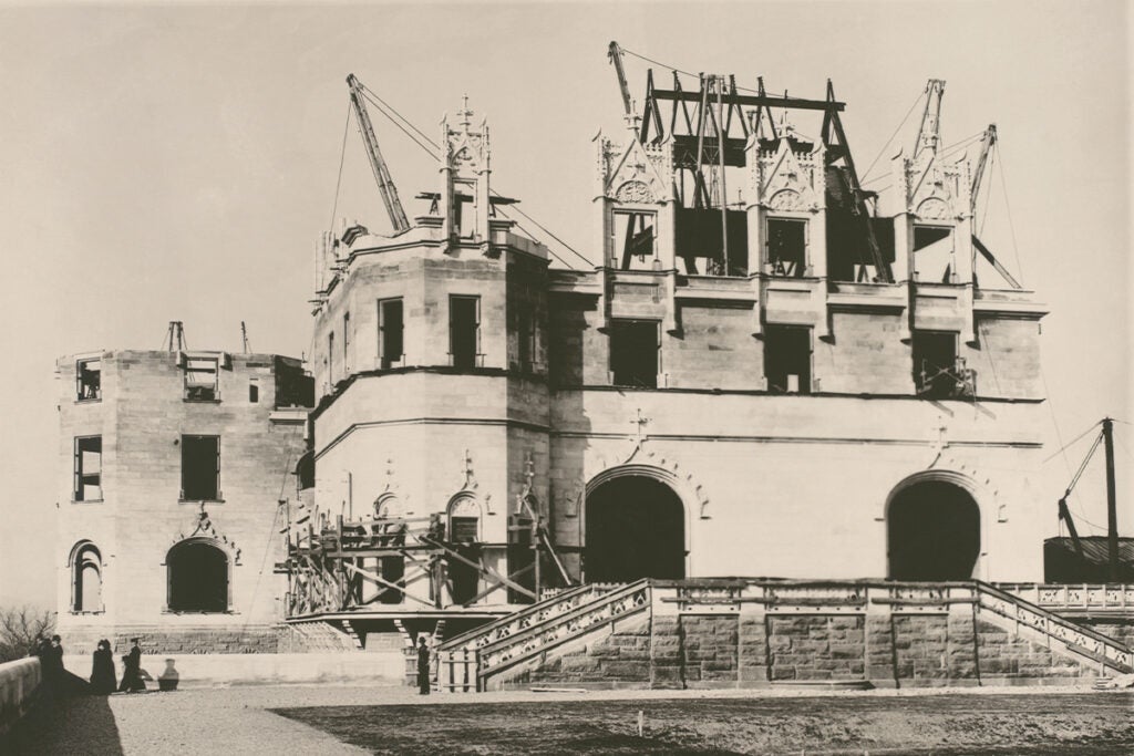 Such delays became more problematic as George Vanderbilt began pushing for a completion deadline. He stayed involved throughout the construction process, receiving frequent updates and photographs taken by those on site as well as visiting three times a year. As work on the second floor commenced, Vanderbilt’s desire to see his new home coalesced into an ambitious goal: Biltmore House must be complete in time for the Vanderbilt family to gather there for Christmas of 1895.