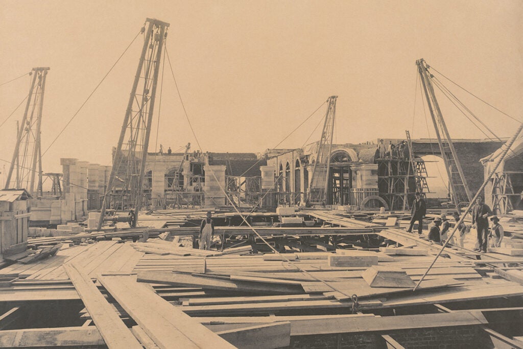 In 1893, the foundation and first floors were complete and work on the structural interiors was well underway. Construction began on the second floor exteriors, but the process was not universally smooth. Late deliveries continually caused strife for the supervising managers.