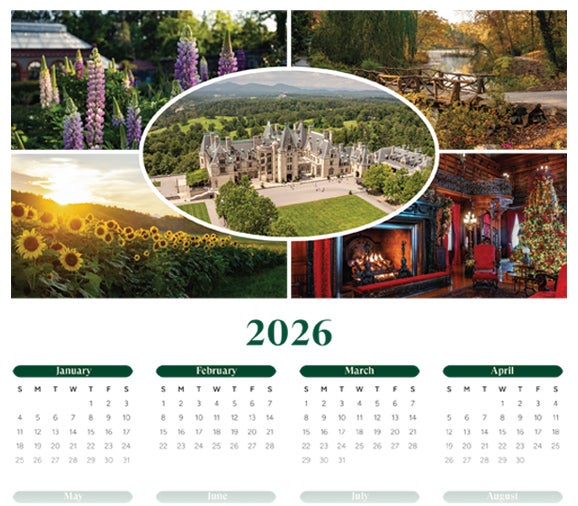 Download your exclusive one-page 2026 calendar featuring images of your favorite Biltmore locations.