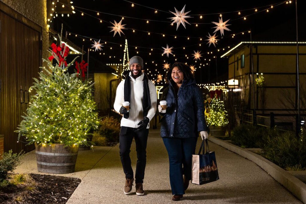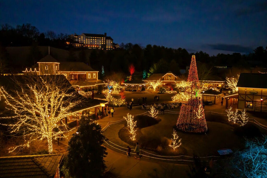 Luminous stars and strands of twinkle lights transform Biltmore’s Antler Hill Village into a merry holiday oasis.