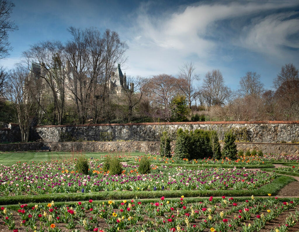 Color is emerging across the estate, and will grow more vibrant in the coming weeks. A stunning display of Daffodils and Tulips greets you at the front entrance. Along Approach Road, deciduous trees are starting to leaf out, their fresh light-green foliage a beautiful contrast with the deep greens of Hemlocks, Pines, Firs, and Arborvitae. Delicate white blossoms highlight the elegant forms of Pear espaliers in our Walled Garden, and throughout the pattern beds, Daffodils, Hyacinths, and Tulips continue to bloom, bringing more color with each passing day.