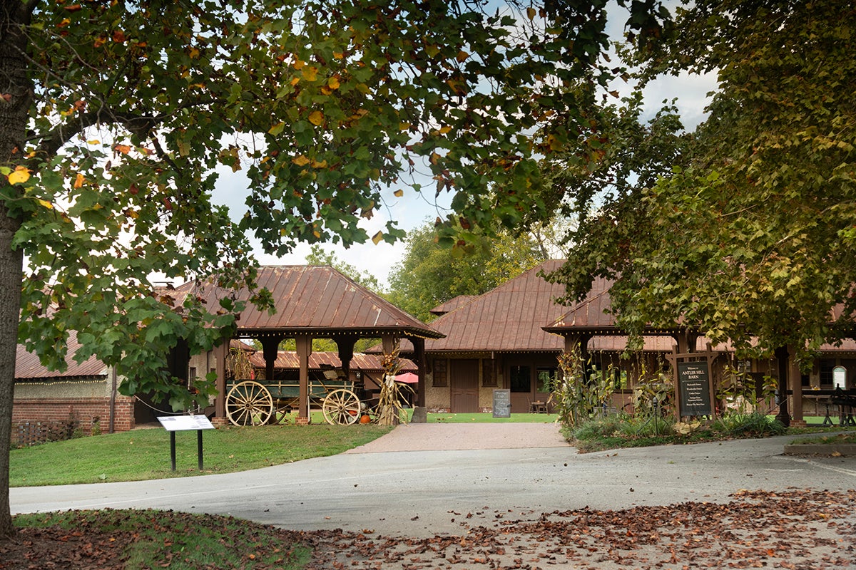 Summer’s hot days and thunder showers usually become far less frequent as the season draws to a close. By mid- to late September, the estate’s late summer garden annuals may perk up with the cooler nights, only to be replaced with colorful chrysanthemums in October. In Antler Hill Village, wave upon wave of sunflowers rise skyward and share their cheerful full-bloom faces. Depending on weather conditions, the estate’s yellow buckeyes can show early leaf coloration, and dogwoods may develop light shades of red, hints that fall will soon be upon us in Asheville. Ironweed flowers and late summer goldenrods also signal summer’s finale, as butterflies enjoy their final sips of sugary nectar. Much to the delight of squirrels and turkeys getting ready for winter, acorns and hickory nuts begin to drop to the forest floor.