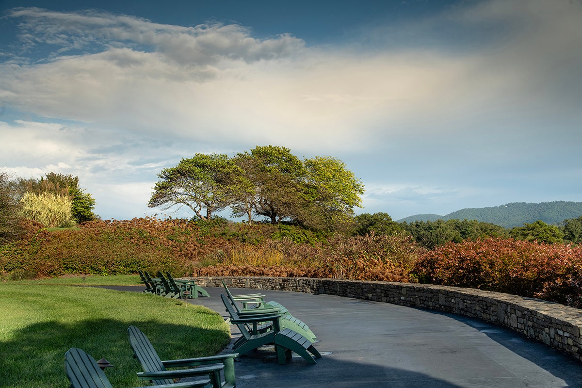 Relax and enjoy sweeping views below The Inn as the Hydrangeas and Abelia take on the rusty tones of autumn.